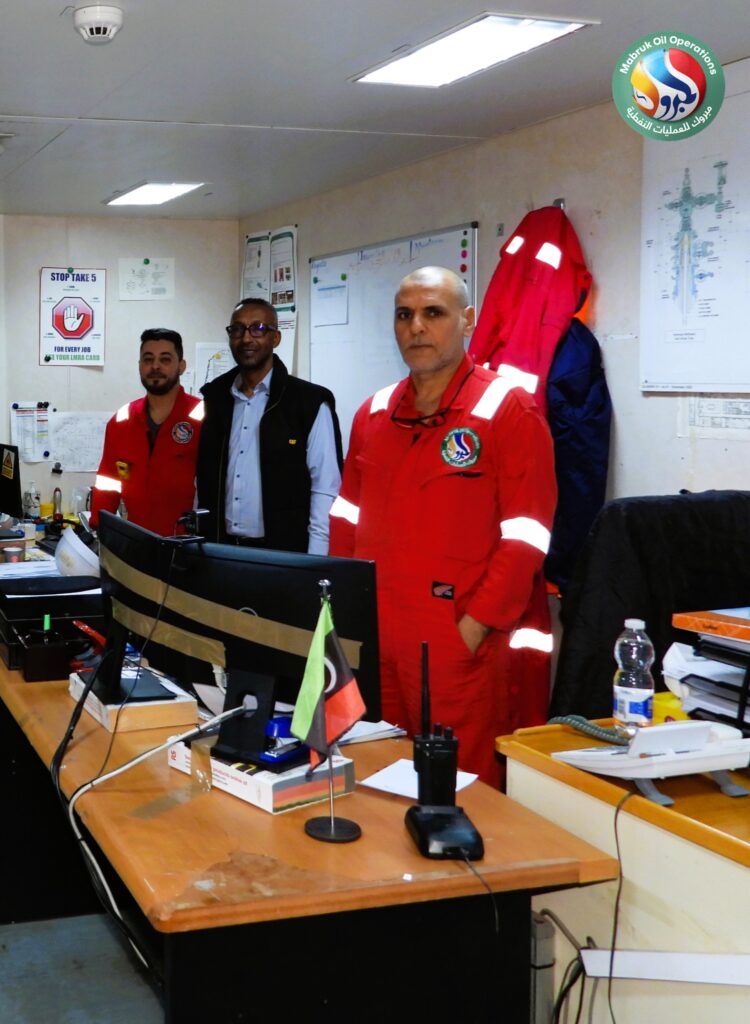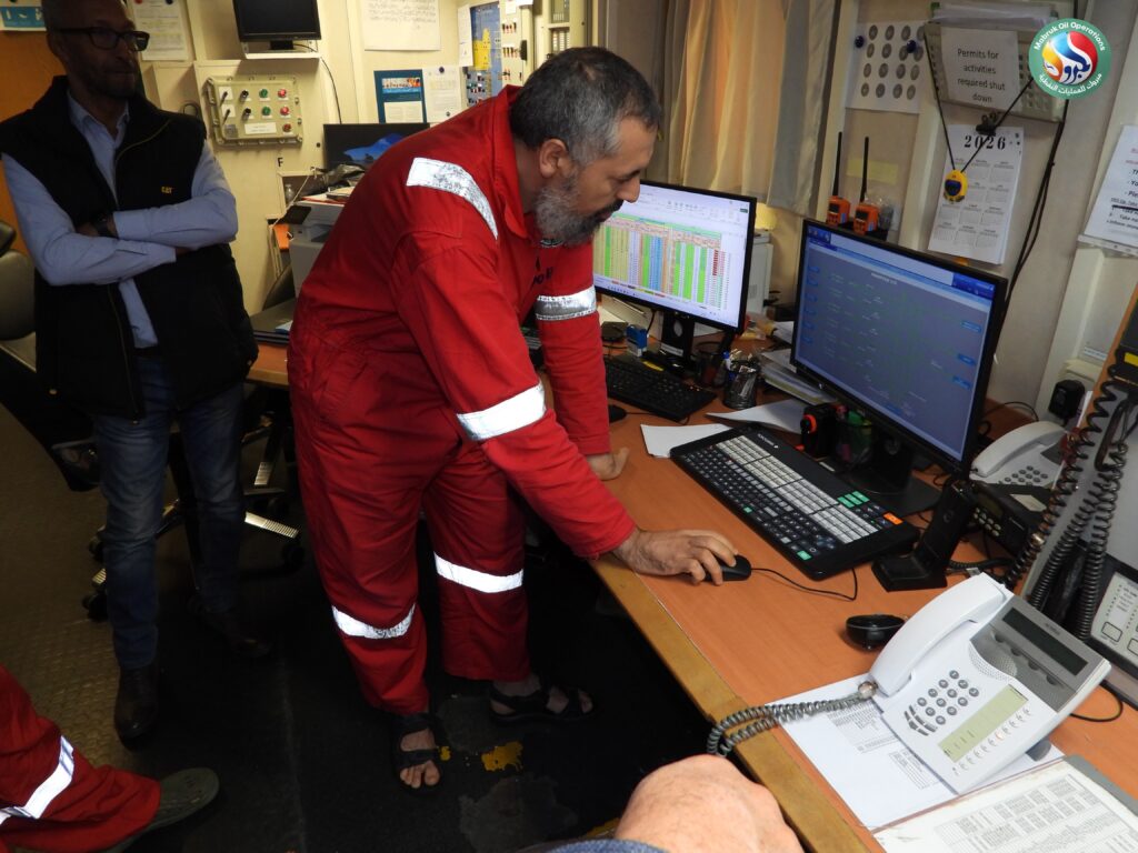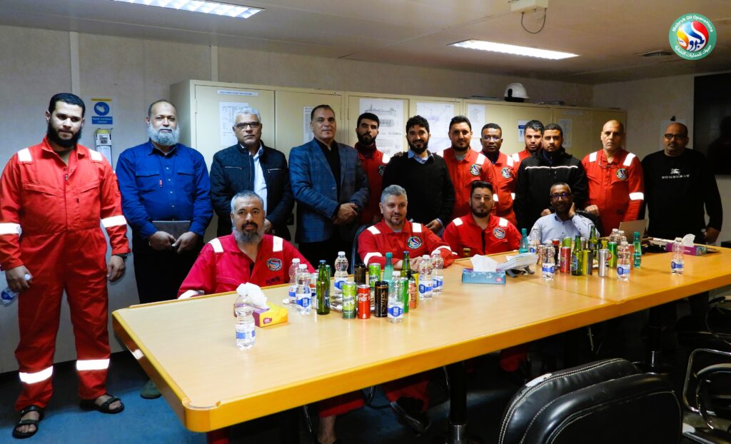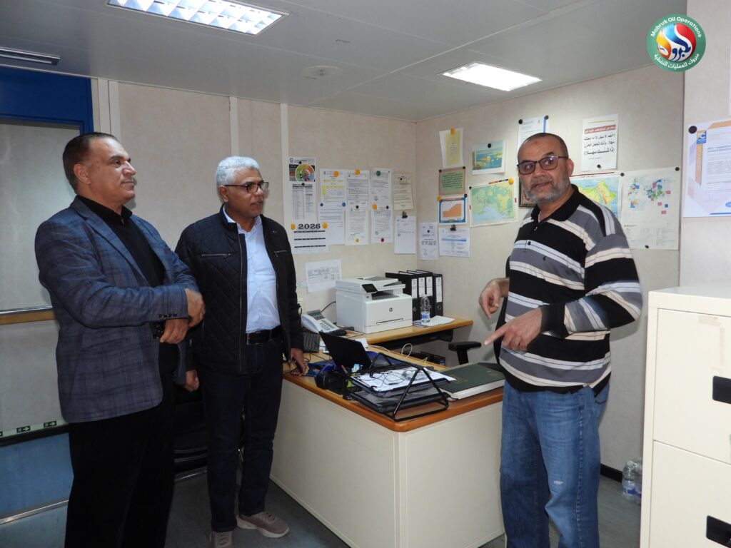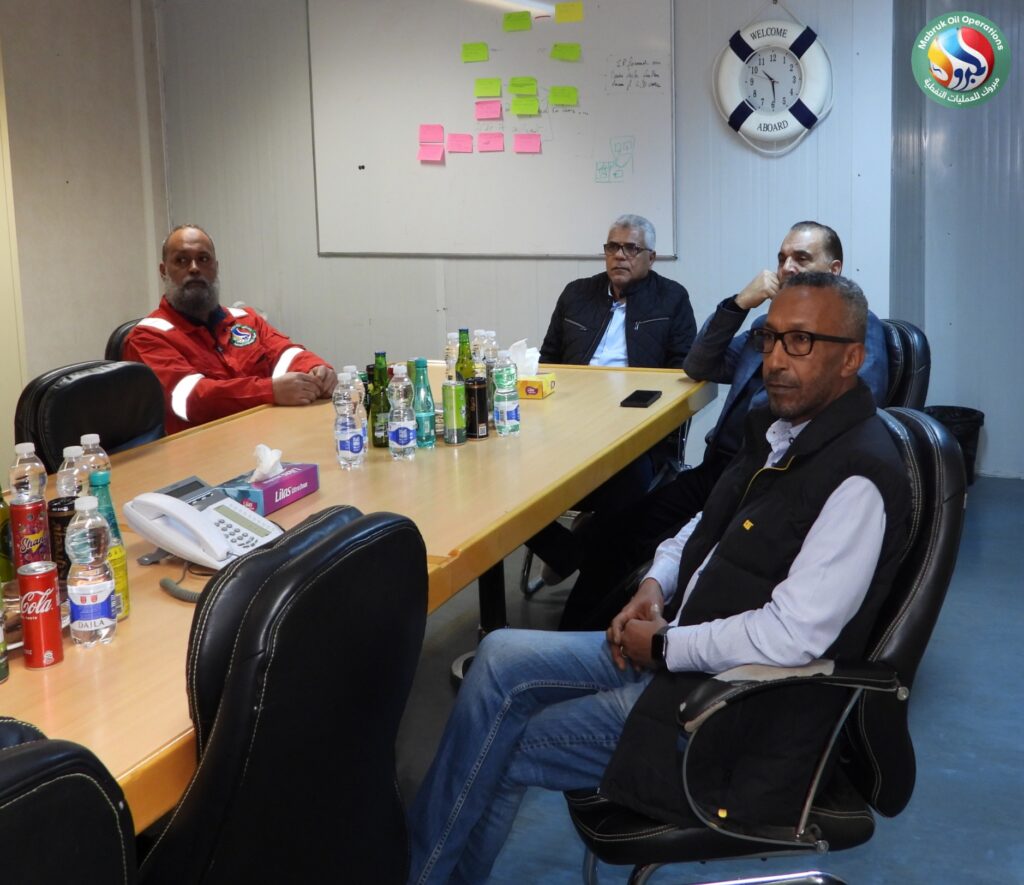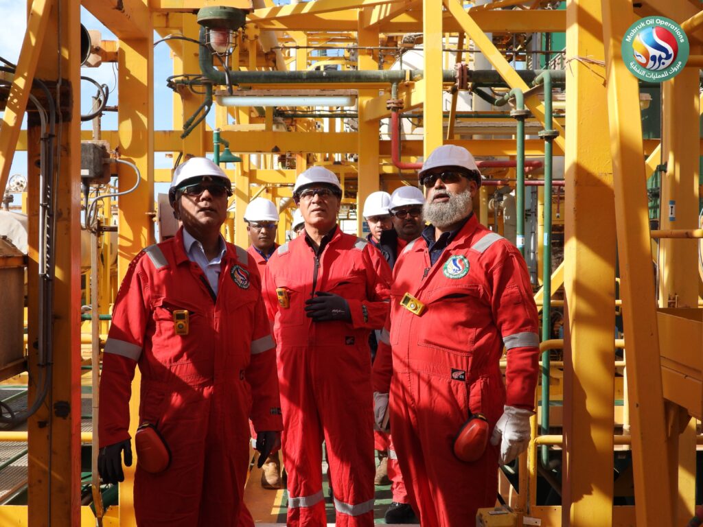 In implementation of the directives issued by the Chairman of the National Oil Corporation (NOC), Eng. Masoud Suleiman, regarding intensifying direct field follow-ups at oil sites, the Chairman of the Operator Management Committee at Mabruk Oil Operations, Eng. Adel Abdulla Elkouni, accompanied by Management Committee member Dr. Musaa Omar Abutwirat, conducted an extensive inspection visit to the Al-Jurf offshore field on Sunday.